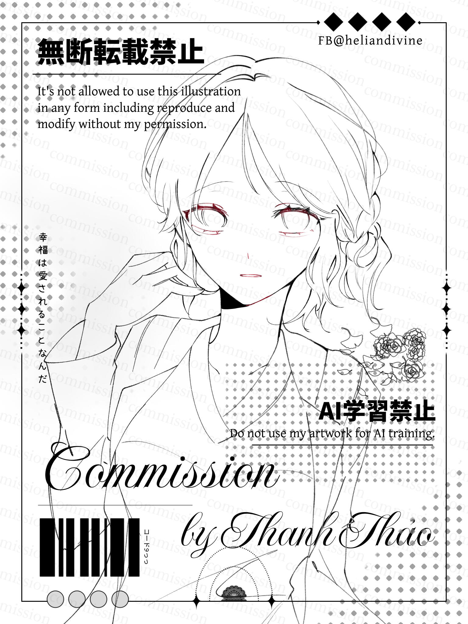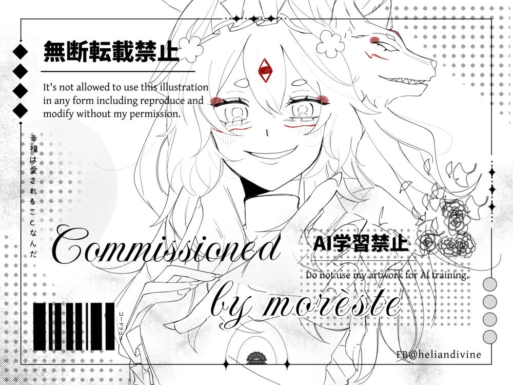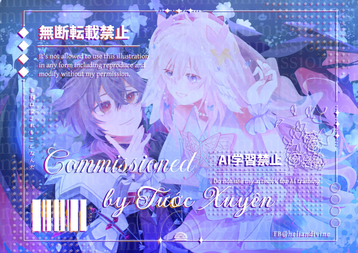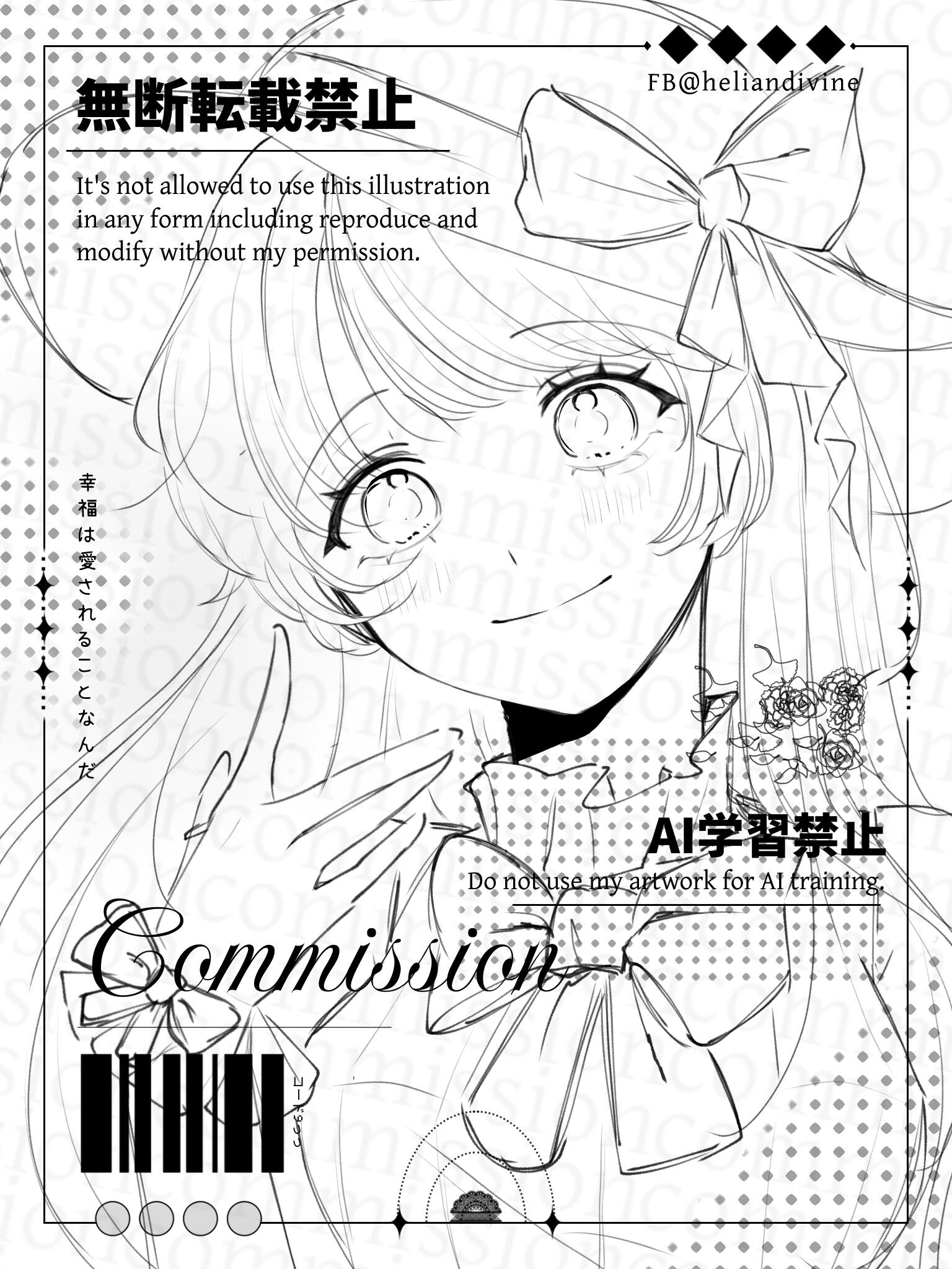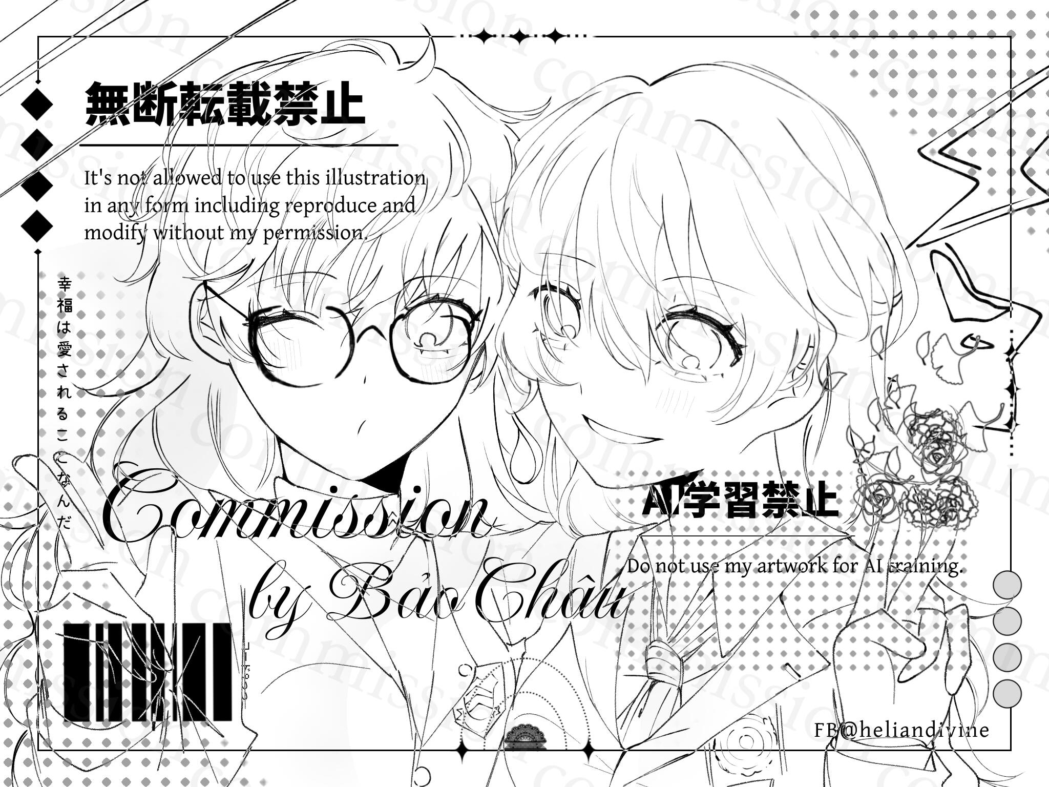 Commission chỉ dùng cho mục đích cá nhân/phi thương mại. Nếu muốn dùng comm mình cho mục đích thương mại xin hãy liên lạc bàn bạc với mình trước.