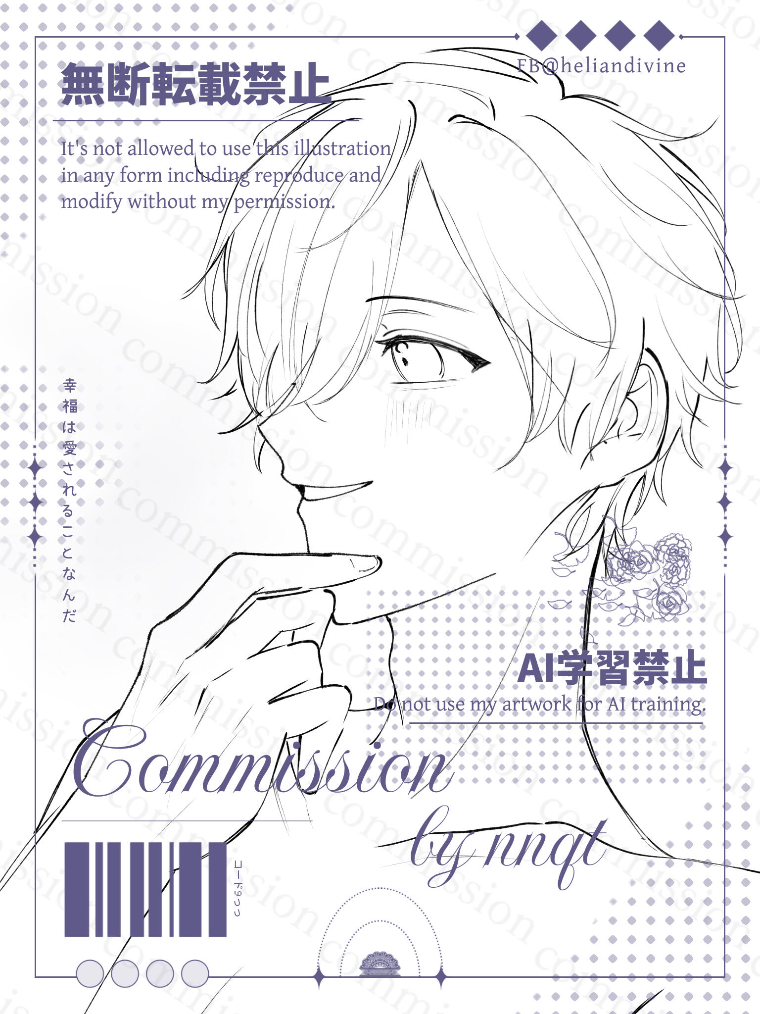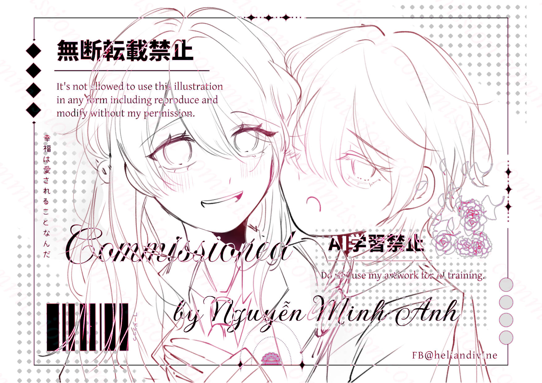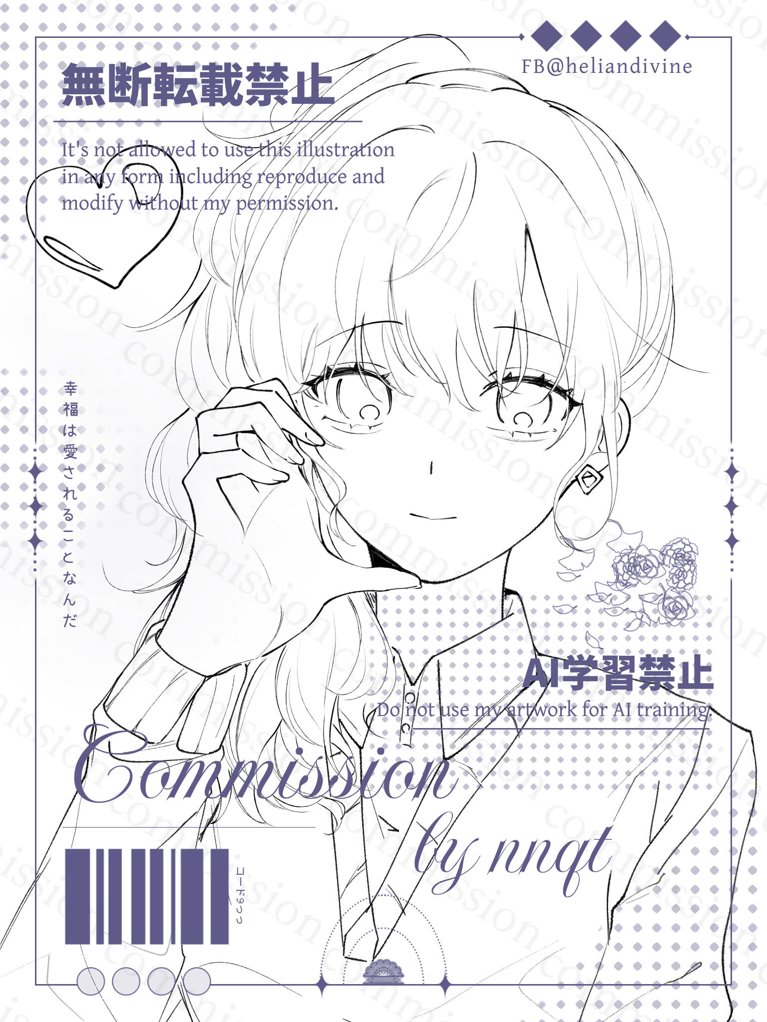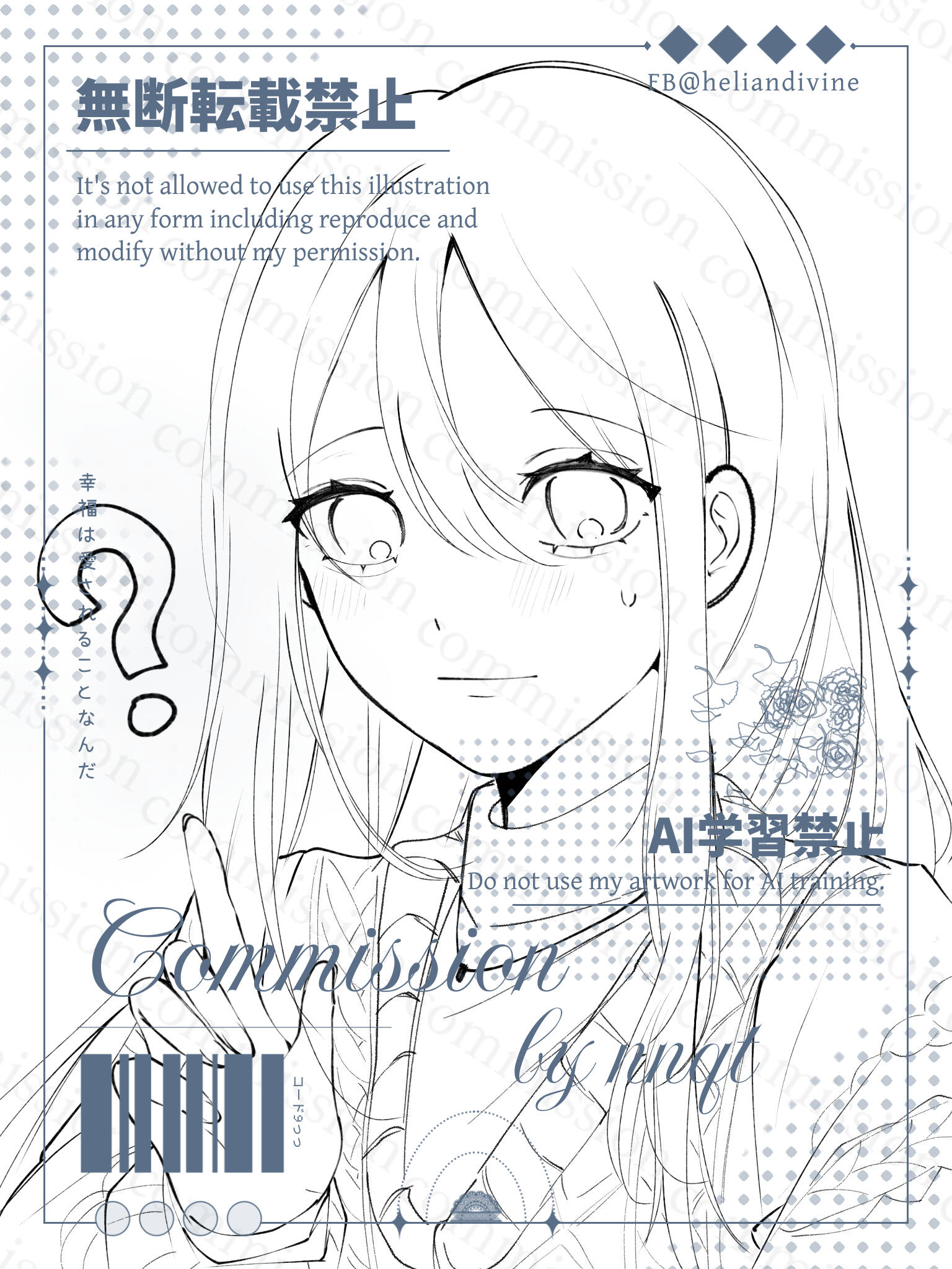 Commission chỉ dùng cho mục đích cá nhân/phi thương mại. Nếu muốn dùng comm mình cho mục đích thương mại xin hãy liên lạc bàn bạc với mình trước.